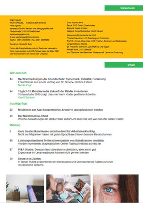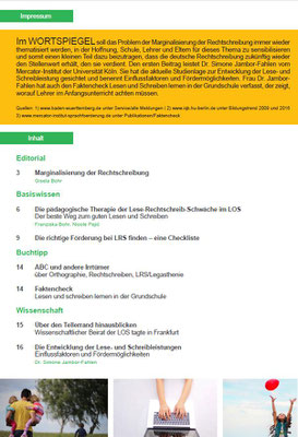 Diese Ausgabe beschäftig sich mit einem kontroversen und wichtigen Titelthema, der Marginalisierung der Rechtschreibung, die ein schulisches, gesellschaftliches, aber auch ein politisches Problem ist. Der LOS-Verbund ist angetreten, Lehrer, Politiker und Eltern für dieses Problem zu sensibilisieren.